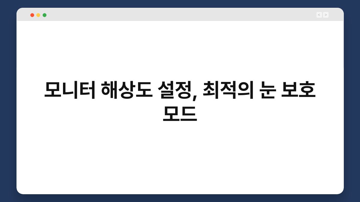 모니터를 오래 사용하다 보면 눈의 피로감이 느껴지곤 하죠. 특히 해상도가 적절하지 않거나 눈 보호 모드가 활성화되어 있지 않다면 그 피로감은 더욱 심해질 수 있습니다. 오늘은 모니터 해상도 설정과 최적의 눈 보호 모드에 대해 알아보겠습니다. 이 글을 통해 눈 건강을 지키면서도 쾌적한 작업 환경을 만드는 방법을 배워보세요. 이제 본격적으로 시작해볼까요?
