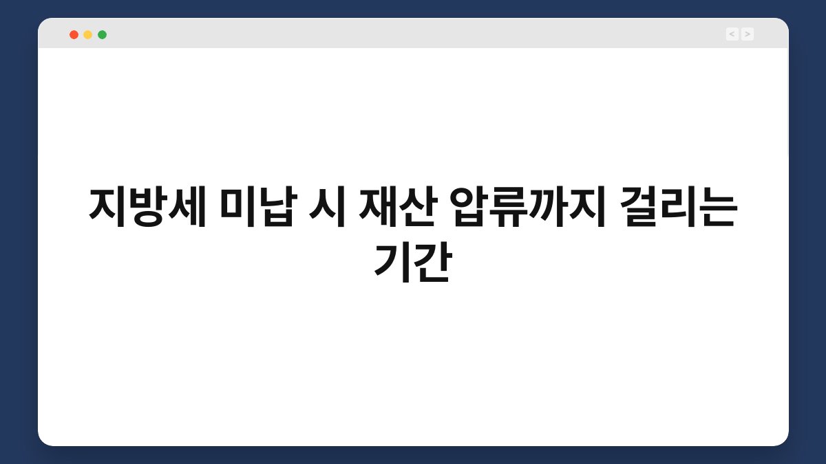 지방세 미납, 누구에게나 일어날 수 있는 상황입니다. 하지만 이로 인해 재산이 압류되는 상황은 피하고 싶으시죠? 지방세 미납 시 재산 압류까지 걸리는 기간에 대해 알아보면, 미리 대처할 수 있는 방법을 찾을 수 있습니다. 오늘은 지방세 미납이 어떤 문제를 일으킬 수 있는지, 그리고 재산 압류까지 얼마나 걸리는지를 살펴보겠습니다. 이 글을 통해 필요한 정보를 얻어가시길 바랍니다.