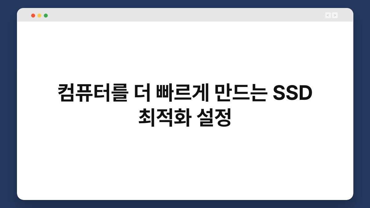 컴퓨터가 느려지면 정말 답답하죠? 특히 중요한 작업을 하거나 게임을 즐길 때, 느린 속도는 큰 스트레스를 유발합니다. 하지만 컴퓨터를 더 빠르게 만드는 SSD 최적화 설정을 통해 속도를 개선할 수 있습니다. 이 글에서는 SSD의 최적화 방법과 설정을 상세히 설명드릴게요. 여러분의 컴퓨터가 더욱 쾌적하게 작동할 수 있도록 도와드리겠습니다.
