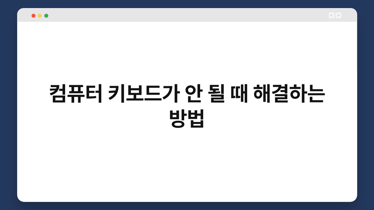 컴퓨터를 사용할 때, 키보드가 작동하지 않는다면 정말 당황스럽죠? 입력이 되지 않으면 작업이 중단되고, 스트레스가 쌓이기 마련입니다. 하지만 걱정하지 마세요. 이 글에서는 컴퓨터 키보드가 안 될 때 해결하는 방법을 단계별로 안내해 드리겠습니다. 다양한 해결책을 통해 문제를 쉽게 해결할 수 있도록 도와드릴게요. 끝까지 읽어보시면 유용한 정보가 가득 담겨 있습니다.