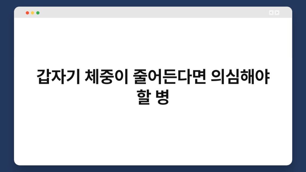갑자기 체중이 줄어드는 경험, 누구에게나 있을 수 있는 일입니다. 하지만 이러한 변화가 단순한 다이어트나 운동의 결과가 아닐 수도 있다는 사실, ...