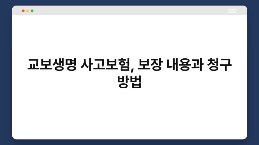 어떤 사고가 발생할지 예측하기란 쉽지 않습니다. 갑작스러운 사고로 인해 소중한 일상이 위협받는 순간, 사고보험의 필요성을 느끼게 됩니다. 특히 교보생명 사고보험은 ...