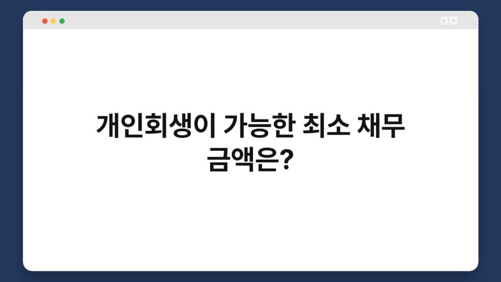 채무 문제로 고민하고 계신가요? 개인회생 절차는 많은 분들에게 새로운 출발을 가능하게 해주는 중요한 방법입니다. 하지만 개인회생이 가능한 최소 채무 금액에 ...